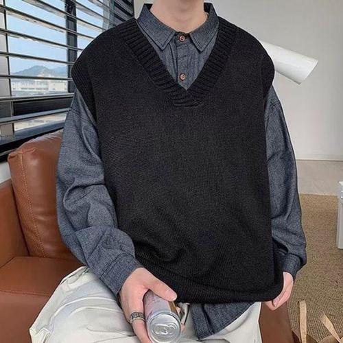 [에이치플러스몰]패션 여자 베스트 니트 브이넥 조끼 캐주얼 오버핏 가을니트조끼 남자 브이넥 남성니트..