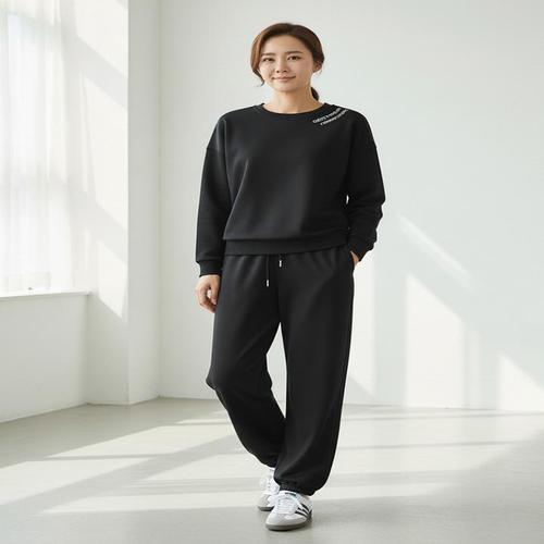 POMTOR 추동 스타일 여성트레이닝세트 기모 트랜드 라운드넥 트레이닝복 조거 팬츠 세트 오버핏