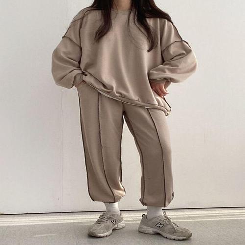 [신상오픈런]여성 캐주얼 루즈핏 트레이닝 맨투맨과 조거팬츠 세트