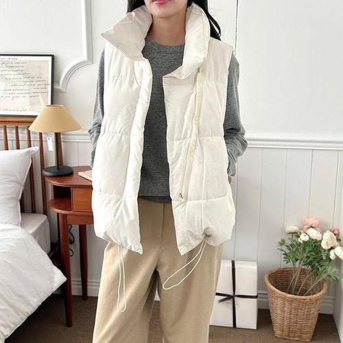 [로아리빙]하이 넥 패딩 조끼 베스트 다운 점퍼 오버핏 웰론