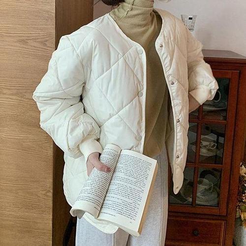 [셀러허브_여성트랜드패션]여성 날씬해보이는 방한 루즈핏 마름모무늬 패딩조끼