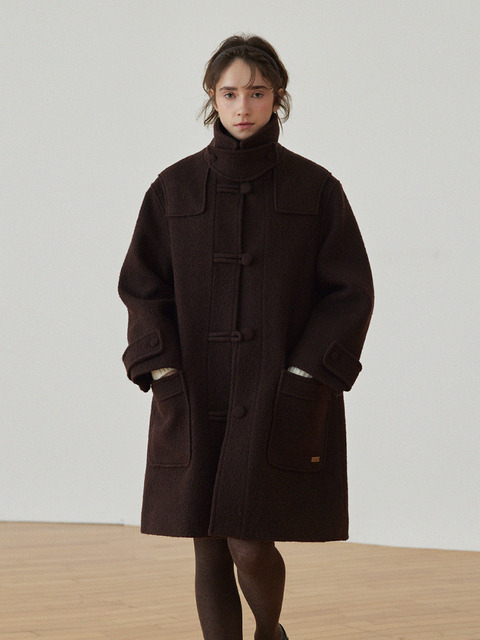 [끌레아]여성 토글단추 모직 더플코트 떡복이 단추 롱 코트 캐쥬얼 루즈핏 아우터 오버핏 브라운