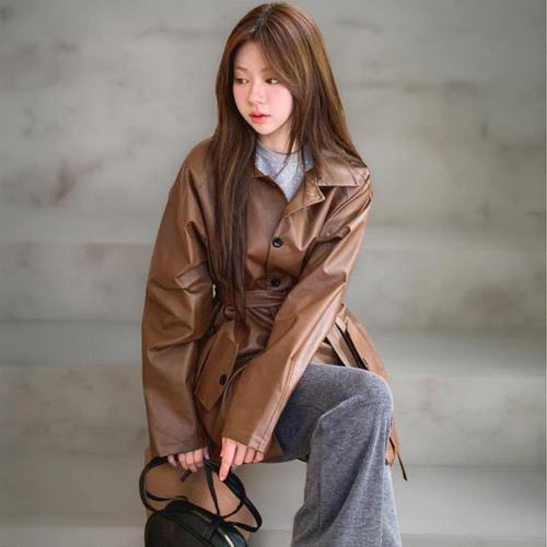 옷자락 / 여성 시크무드 분리형 스트랩 가죽 루즈핏 재킷