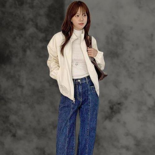 여성 스웨이드 루즈핏 밑단밴딩 캐주얼 깔끔핏 데일리룩 데이트룩 패션 숏자켓 카라집업자켓