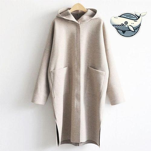 [에이치플러스몰]봄 가을 오버핏 후드코트 캐주얼 롱코트 베이지