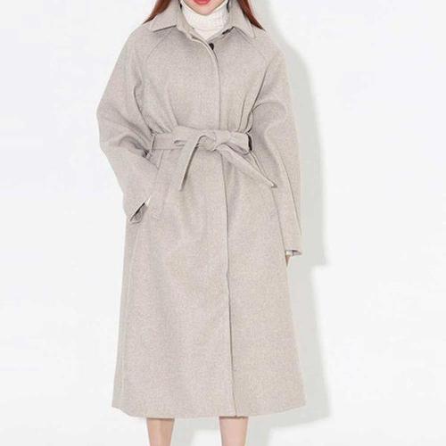 [에이치플러스몰]모직 오버핏 벨트 더블 롱코트 스타일리시 오피스룩