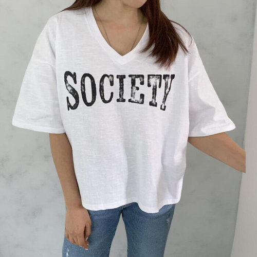 [옷자락] 여성 면혼합 레터링 브이넥 루즈핏 반팔 티셔츠
