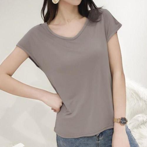 샵앤) 여성 국산 슬림루즈핏 V넥 컬러 반팔 DAI-WSH-0902-그레이