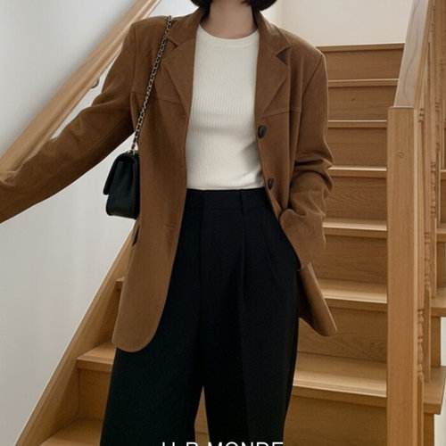 로코 데일리 스웨이드 오버핏 자켓 가을 여자 브라운 카라자켓 출근룩