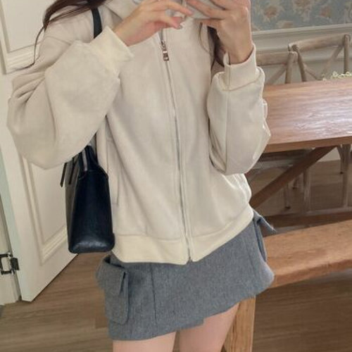 Latium HC06 크롭 루즈핏 스웨이드 세무 라운드 집업 쟈켓형 이브 점퍼 T2533jp14DG