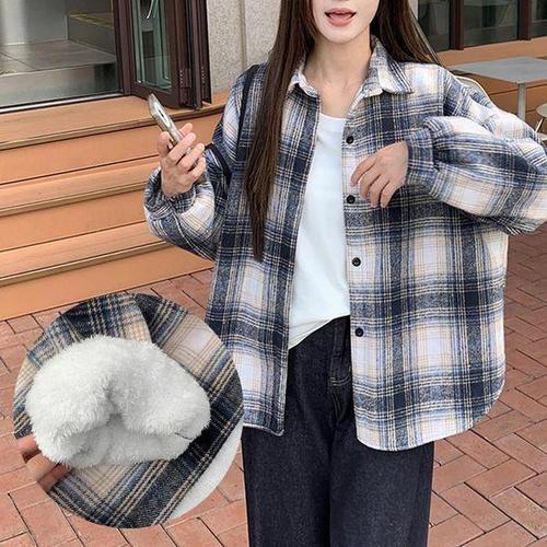 [셀러허브_여성트랜드패션]체크무늬 양털셔츠자켓 루즈핏 F007448_따뜻한