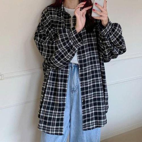 [에이치플러스몰]가을 체크 클래식 셔츠 자켓 여성 루즈핏