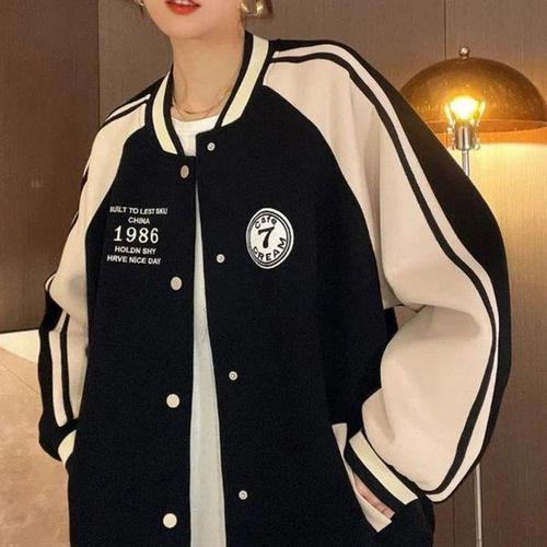 [에이치플러스몰]여성 캐주얼 유니크 프린팅 루즈핏 야구점퍼 블루종
