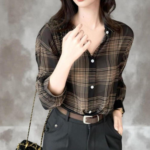 [옷자락]여성 키치무드 체크 패턴 루즈핏 7부 셔츠 블라우스