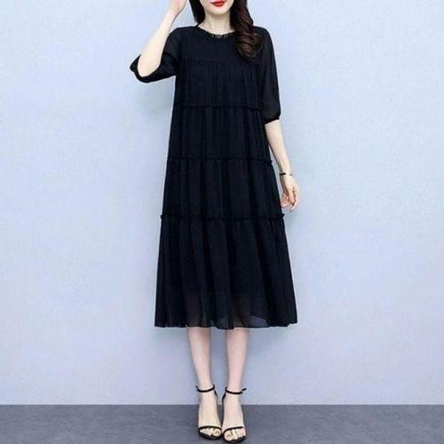 [에이치플러스몰]여름 여성 추천 루즈핏 프릴넥 꾸안꾸 포인트 7부소매