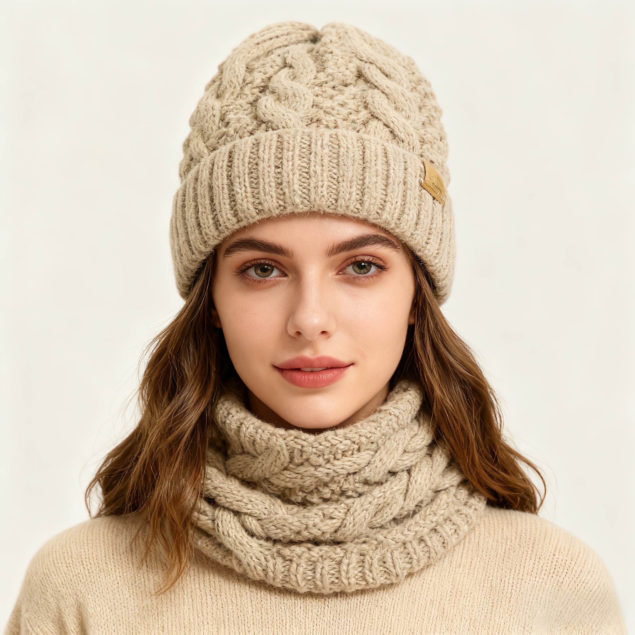 TEMU 여성용 겨울 비니 & 스카프 세트 1개 - 부드럽고 신축성 있는 모자 & 넥 게이터, /중성 톤, 가벼운 따뜻한 겨울 모자 (귀 보호 기능 포함), 할로윈 코스튬 액세서리, 겨울 모자, 시즌 패션, 우아한 디자인, 포근한 소재, 남녀공용 모자