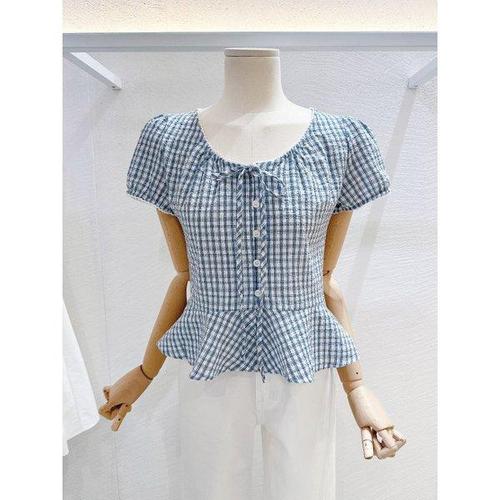 TEMU 플러스 사이즈 - 플러스 사이즈 - 플러스 사이즈 체크 무늬 우아한 루즈핏 여성용 반팔 블라우스
