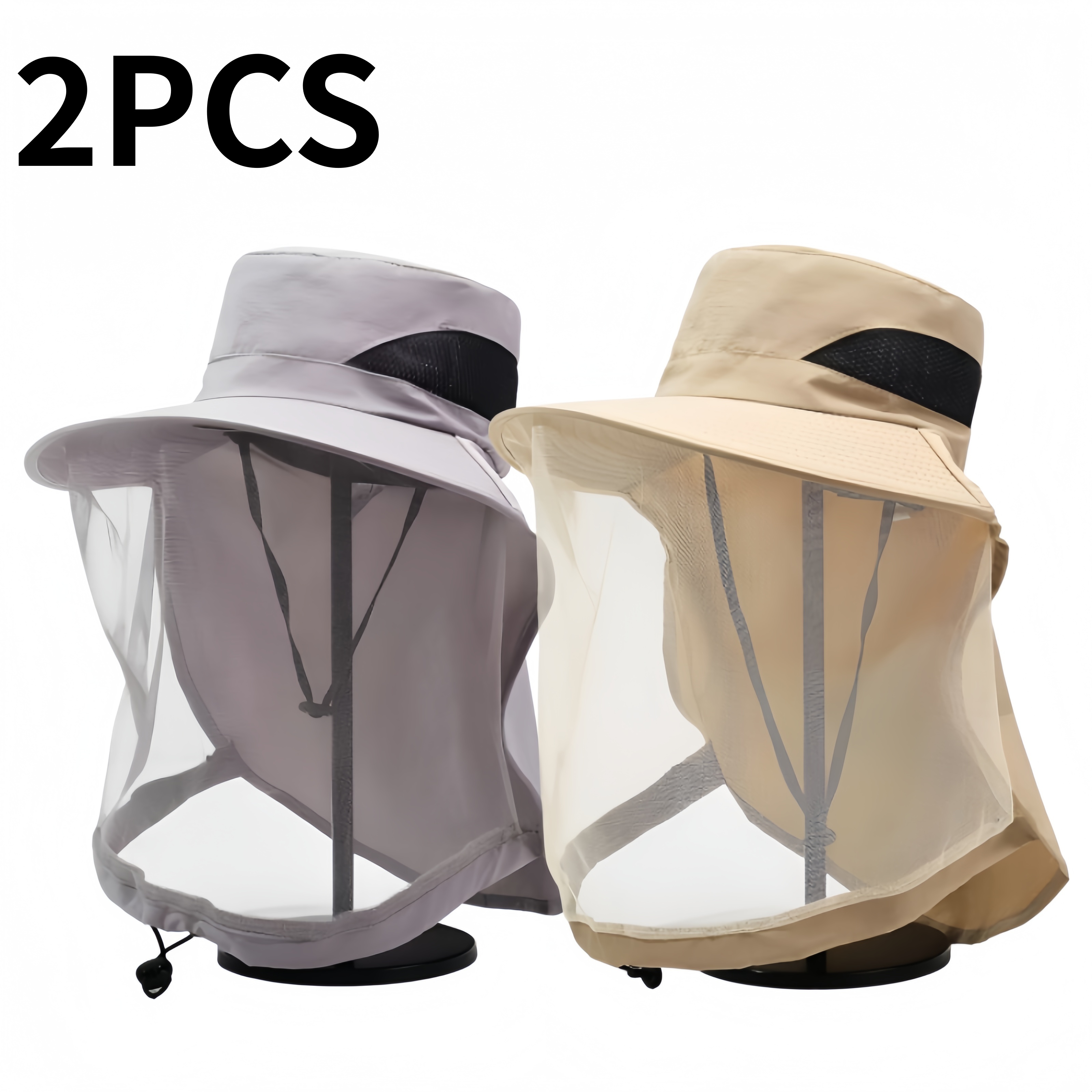 TEMU 2개 세트 여름 신상 남녀공용 낚시 모자, 통기성 메시 및 탈부착식 마스크 포함, 야간 낚시, 야외 차가락, 사이클링, 하이킹, 캠핑에 적합. 스타일리시하고 통기성이 좋으며 다양한 야외 활동에 편안함을 제공합니다.