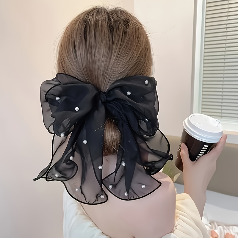TEMU 싱글 레이스 리본 장식 헤어 클립 - 구슬 장식, 플로럴 디자인, 여성용, 발렌타인데이 선물용