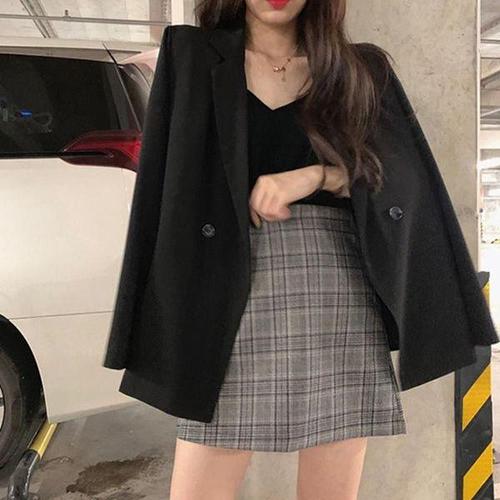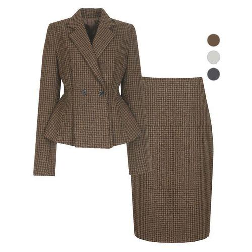 [비비드시크릿가너]SET 여성 겨울 아가일 더블 정장 울자켓+스케트 세트