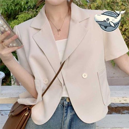 [다잇템]여자 더블버튼 여름반팔자켓 세미크롭 자켓