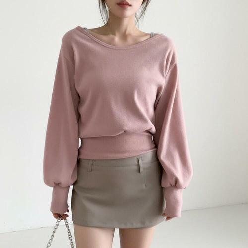 [옷자락] 여자 루즈핏 폴리스판 오프숄더 벌룬소매 맨투맨