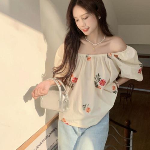 여성 여름 데일리 오프숄더 데이트룩 플라워 블라우스 (WFHQHRE)