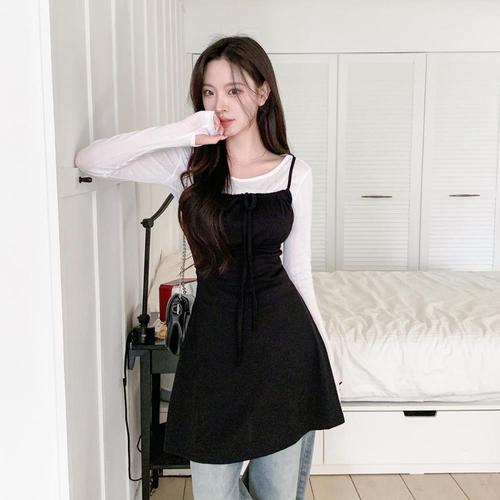 [옷자락] 여자 봄 가을 간절기 레이어드 보트넥 워머 골지 티셔츠