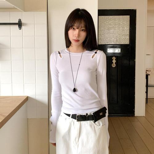 [옷자락] 여자 데일리 어깨트임 슬림 티셔츠