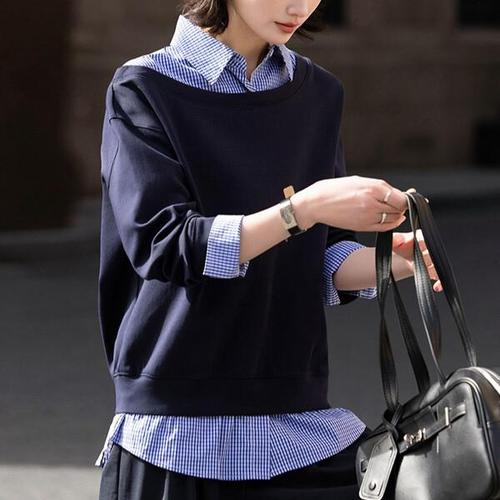 [신상오픈런]여성 체크 패턴 언발란스 오프숄더 블라우스 초커 스타일