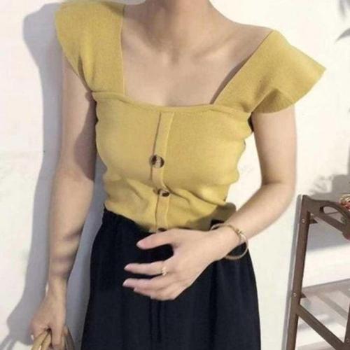 여성 골지니트 스퀘어넥 오프숄더 DHH-E72