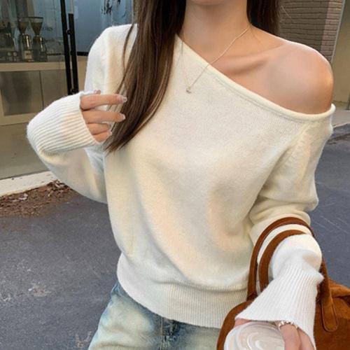[라일리여성의류] Rly 3컬러 여리한 쇄골라인 오프숄더 니트 긴팔티셔츠