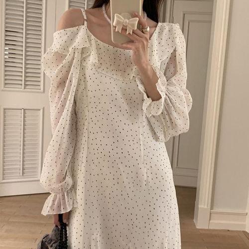 [랄라모션]오픈숄더 도트 롱원피스(llm0632)
