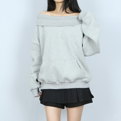 [옷자락] 여성 데일리 면혼방 오버사이즈 오프숄더 맨투맨