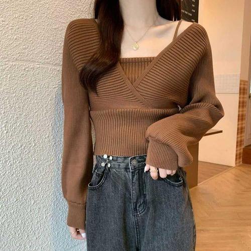 [에이치플러스몰]여성 장미 어깨끈 오프숄더 긴팔티 1P 간절기 니트