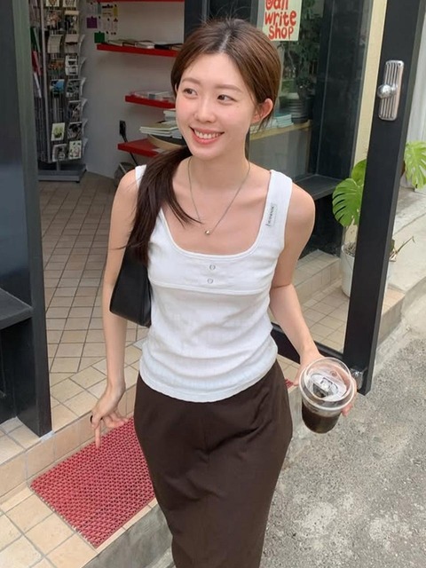 1+1 어브라운 여성 와플 민소매 나시 캐주얼 이너 나시티