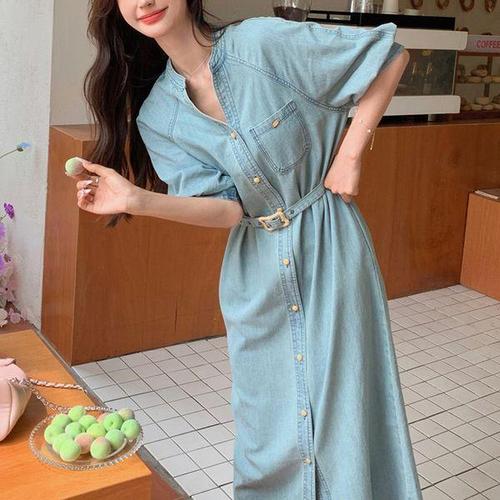Latium HC06 앞오픈 7부반팔 주머니 카라 벨티드 세미 정장 데이 원피스 T2523op14