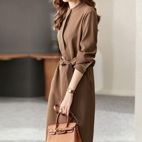 러우 셔츠 원피스 정장핏 슬림핏 롱 원피스 벨트포함 벨트원피스