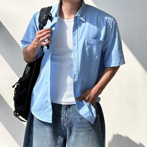 [리빌모아]여름 남자 옥스퍼드 오버핏 심플 반팔 남방 셔츠 RB-SHH-Q073