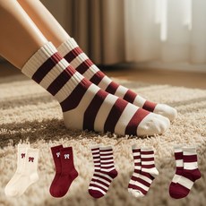 더메이크 클래식리본 여성 중목 양말 5켤레