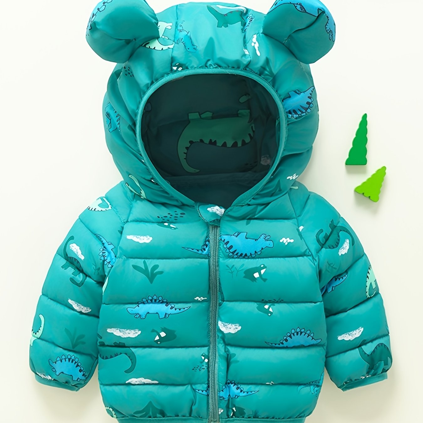 TEMU 소년용 패딩 코트, 동물 프린트 후드, 캐주얼 겨울 신상품, 추운 날씨용 의류,소년용 겨울 의류,스타일리시한 소년 재킷,긴팔 코트