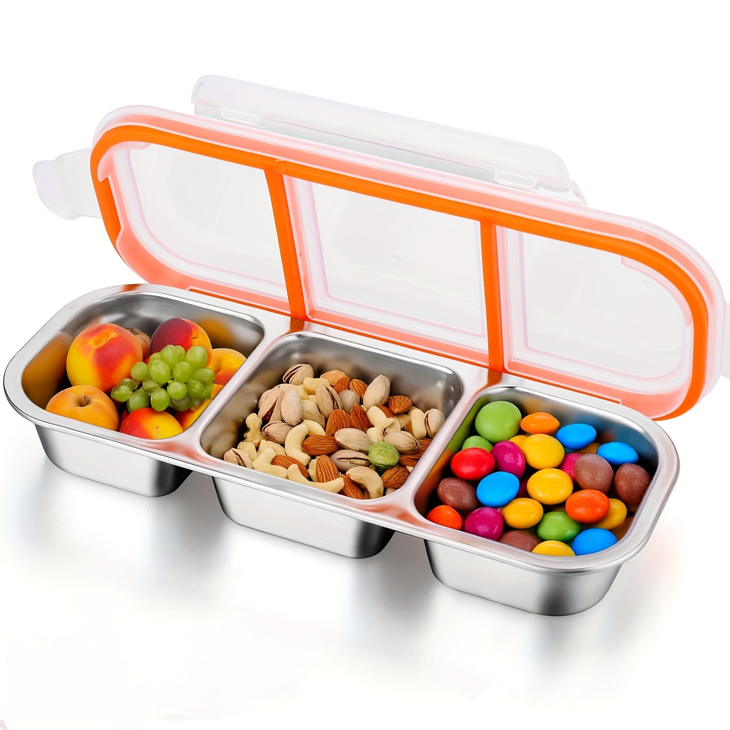 TEMU 3단 스테인리스 스냅 컨테이너 - 플립탑 뚜껑, 밀폐 식품 보관함, 설거지기 안전, 공간 절약형 오피스/학교/여행용 주방 정리함, 고강도 304 스테인리스 제작, 모던 메탈릭 마감|트라이탄밀폐용기