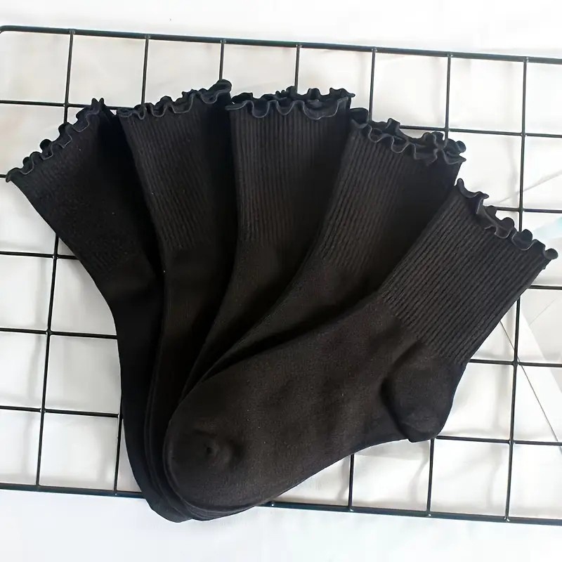 TEMU 10켤레 여성용 봄/가을 블랙 & 화이트 러플 솔리드 미드 캐프 양말, 트렌디한 다용도 대학 스타일 귀여운 롱 양말