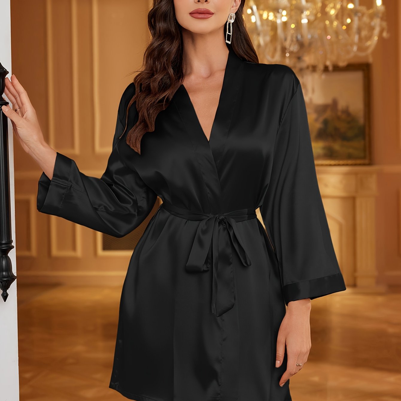 TEMU 데이 럭셔리 여성용 실크 옷 - 부드럽고 가벼움, 100% 폴리에스터, V넥, 벨트, 통기성, 편안함, 가을/겨울용 섹시한 잠옷, 단색, 편안한 옷으로 휴식과 휴식을 위한 우아한 옷