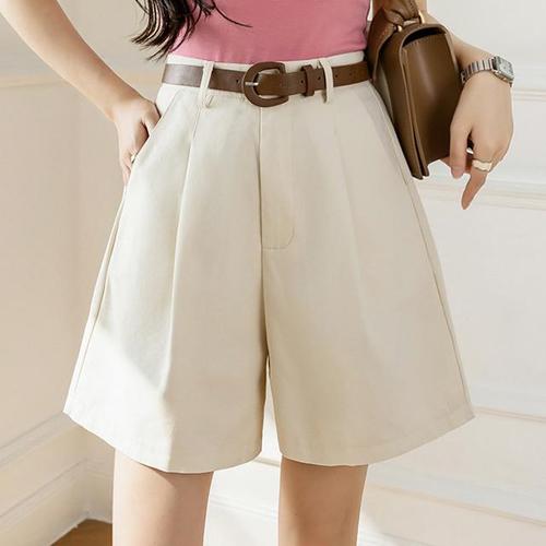 [미라클세븐]여성용 봄 여름 핀턱 와이드 밴딩 반바지 슬랙스