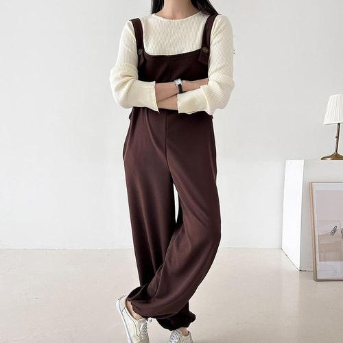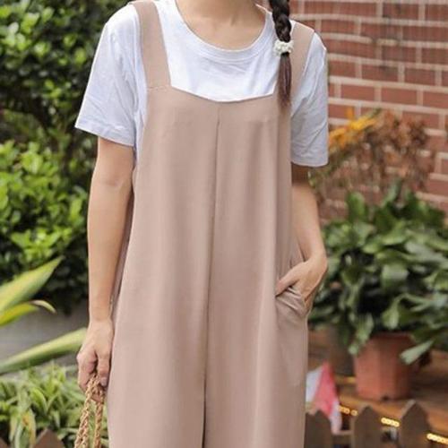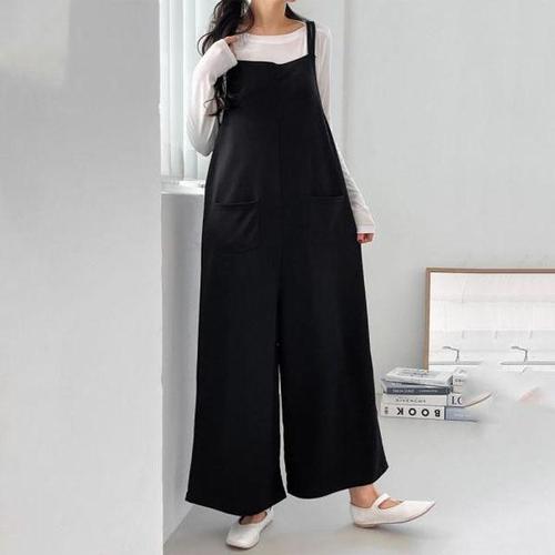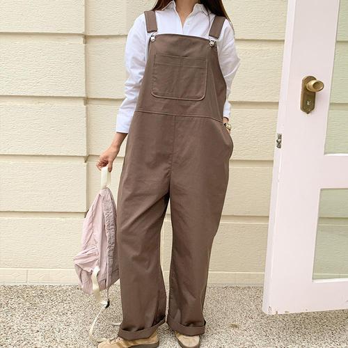 [옷자락]여성 루즈핏 와이드 스트랩 포켓 폴리 스판 점프수트