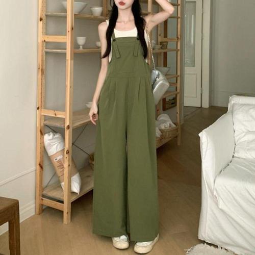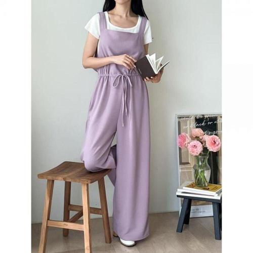 FINE ART 여성 멜빵바지 솔리드 캐주얼 와이드 팬츠 점프수트