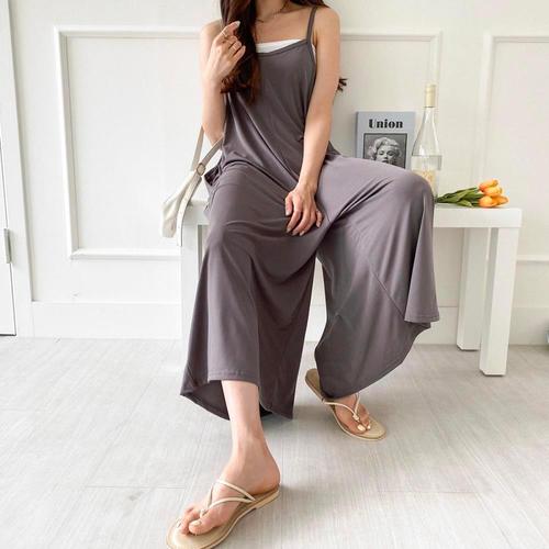 [옷자락]여자 폴리스판 루즈핏 와이드 민소매 점프슈트
