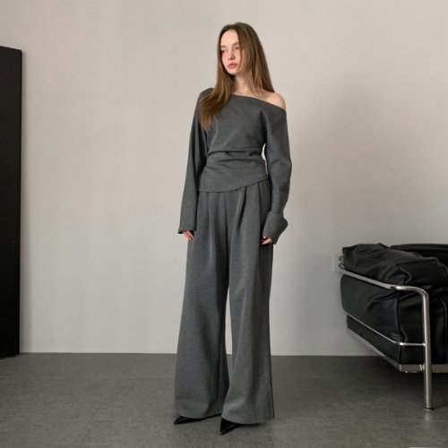 [바스카라][세트] 오프 숄더 셔링 탑+와이드 팬츠 셋업 투피스 (3colors)