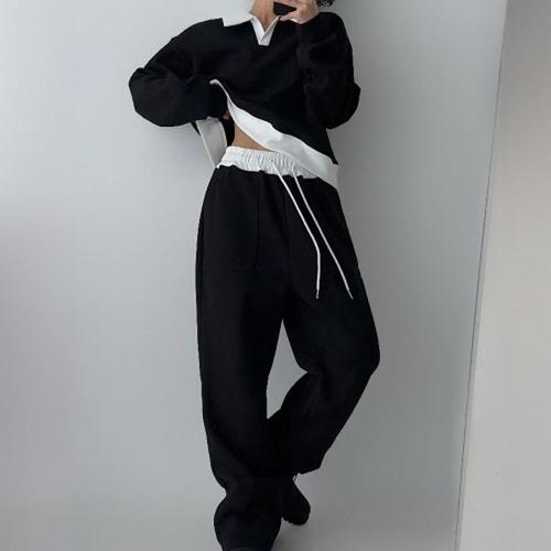 708090 가을 겨울 여성 캐주얼 스탠드넥 상의 와이드팬츠 투피스